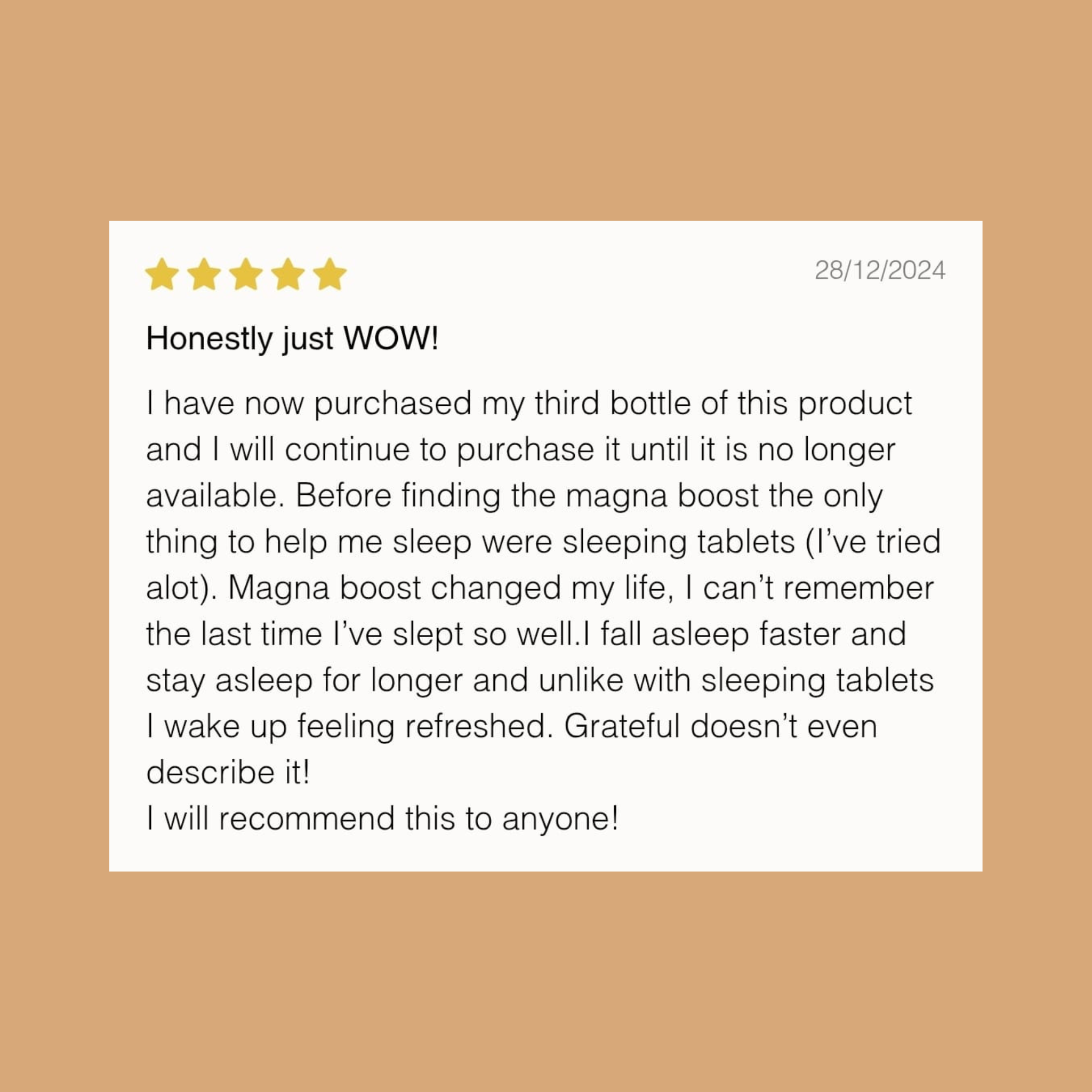 Unlike many magnesium supplements on the market, Magna Boost contains pure magnesium glycinate — a form that’s gentle on the gut, highly absorbable, and not diluted with low-quality fillers like magnesium oxide or citrate. Many cheaper magnesium products only deliver about 20% of what your body can actually use. Magna Boost is designed with bioavailability in mind, ensuring that your body actually absorbs and benefits from every scoop.